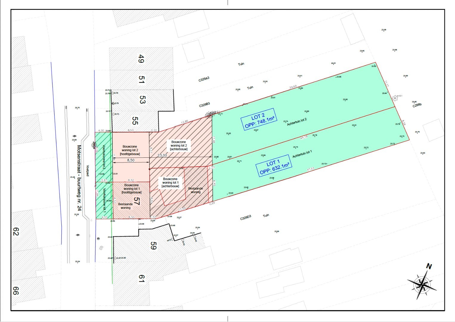 Met een perceelbreedte van net geen 12 meter en een mogelijke bouwdiepte van 18 meter zijn er voldoende mogelijkheden om een zeer ruime gezinswoning te creëeren van +/- 300 m². Het hoofdgebouw heeft een maximale bouwdiepte van 8,5 meter en hier kunnen 2 volwaardige bouwlagen worden voorzien onder de vorm van een plat dak of zadeldak. Daarnaast kan er ook een ruime gelijkvloerse achterbouw geplaatst worden (plat dak) met een diepte van 18 meter vanaf de voorgevel en met een hoogte van 3 meter. Dankzij de ligging en de oriëntatie geniet u het hele jaar door van prachtige vergezichten en een optimale beleving van de groene omgeving.