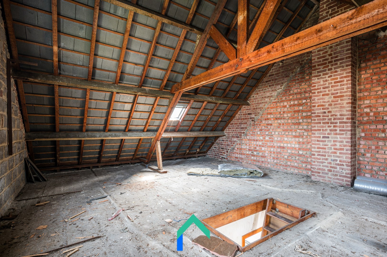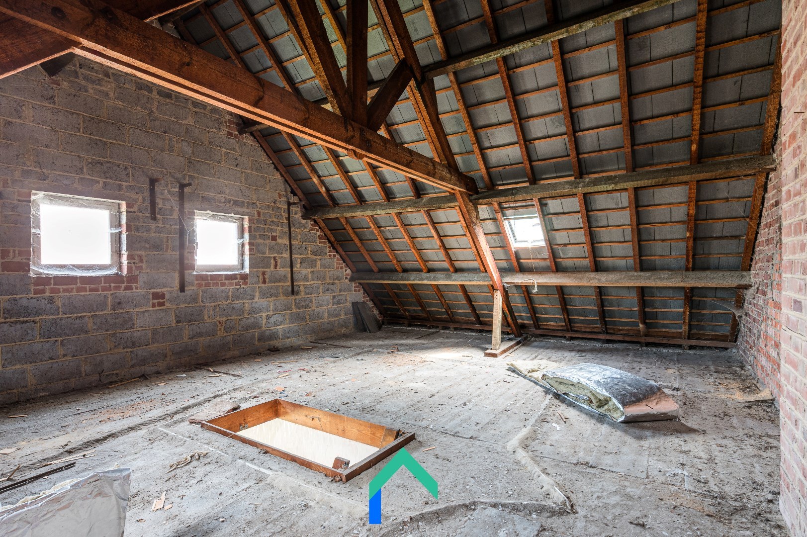 Bij binnenkomst treed je binnen via een inkomhal met elegante marmeren trappenhal. Onmiddellijk bereik je een royale, lichtovergoten leefruimte die naadloos aansluit op de keuken. Vanuit de keuken heb je toegang tot de badkamer én een praktische berging. Op de 1e verdieping is er een mogelijkheid om 3 ruime slaapkamers te voorzien. De zolder biedt extra ruimte en kan, mits renovatie, worden ingericht met nog 2 bijkomende slaapkamers. De woning beschikt verder over een aparte garagebox en een brede oprit. De tuin strekt zich diep uit achter de woning en vormt, samen met het grote perceel, een van de voornaamste troeven van dit pand. Bovendien beschikt deze eigendom over een volwaardig magazijn van maar liefst 80 m². Deze woning biedt niet alleen een stevige basis en een logische indeling, maar ook veel potentieel voor wie op zoek is naar ruimte, privacy en de vrijheid om volledig naar eigen smaak te renoveren.