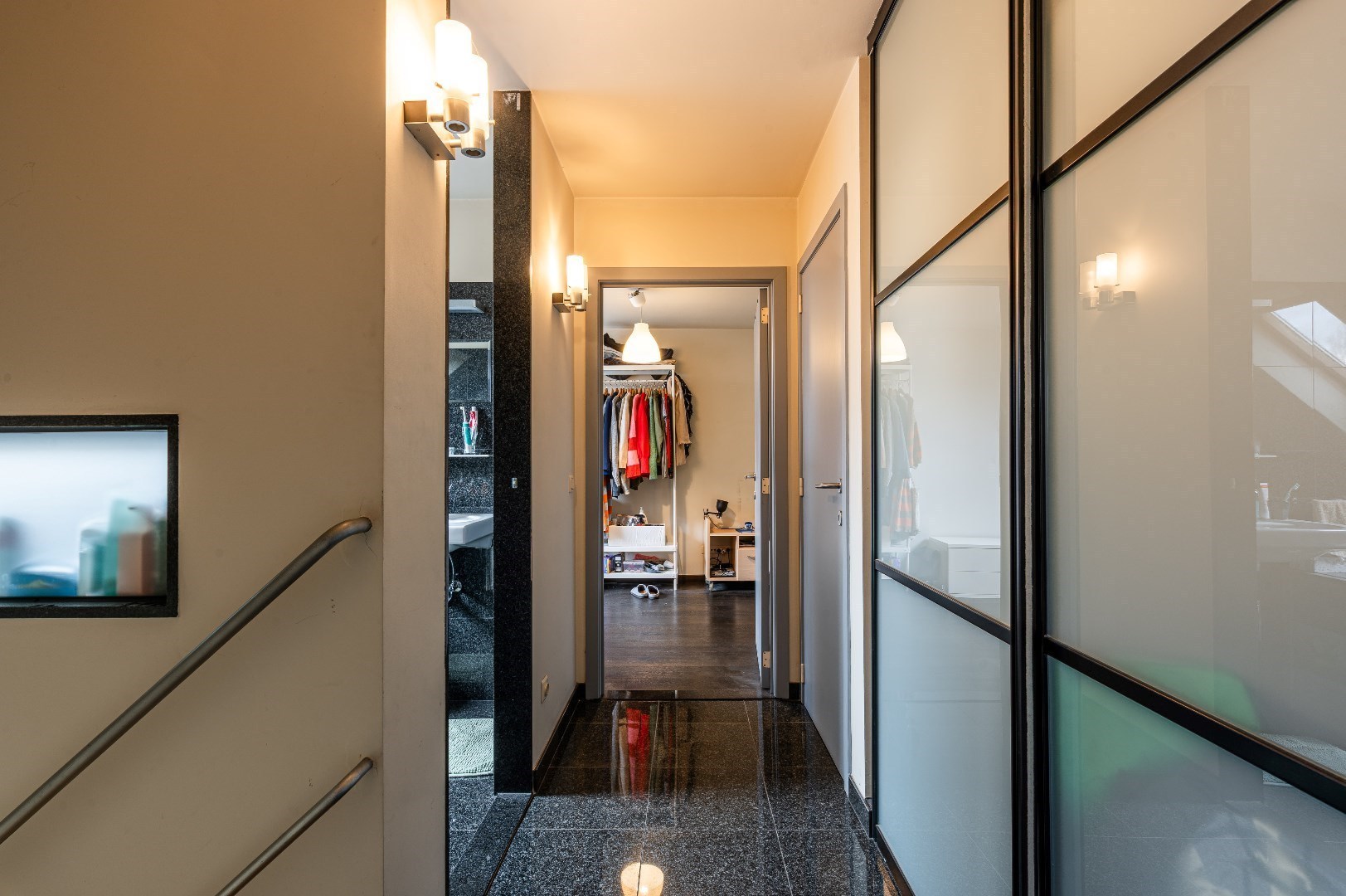 Stap binnen in deze charmante duplex op de derde verdieping en ervaar een harmonieuze mix van stijl en functionaliteit. De ruime inkomhal, voorzien van een gastentoilet, leidt naar een eerste ruime slaapkamer met een warme parketvloer. Op hetzelfde niveau vind je een eigentijdse badkamer met opvallende blauwe mozaiëktegels en een inloopdouche. In de lichtrijke leefruimte is er voldoende ruimte voor zowel een gezellige zithoek als een werk- of eetplek. De open keuken vormt het hart van het appartement, met een groot schuifraam dat toegang geeft tot het zuidoostgerichte terras met een groen uitzicht. In de keuken is er ook nog een extra berging die ideaal is als wasplaats of voorraadkamer. Via de trap in de keuken bereik je de eerste verdieping, waar nog twee ruime slaapkamers op je wachten. Beide kamers zijn afgewerkt met een opnieuw een warme parketvloer en bieden voldoende ruimte en opbergmogelijkheden. Een tweede badkamer met ligbad en een apart toilet op de eerste verdieping zorgen voor extra comfort.