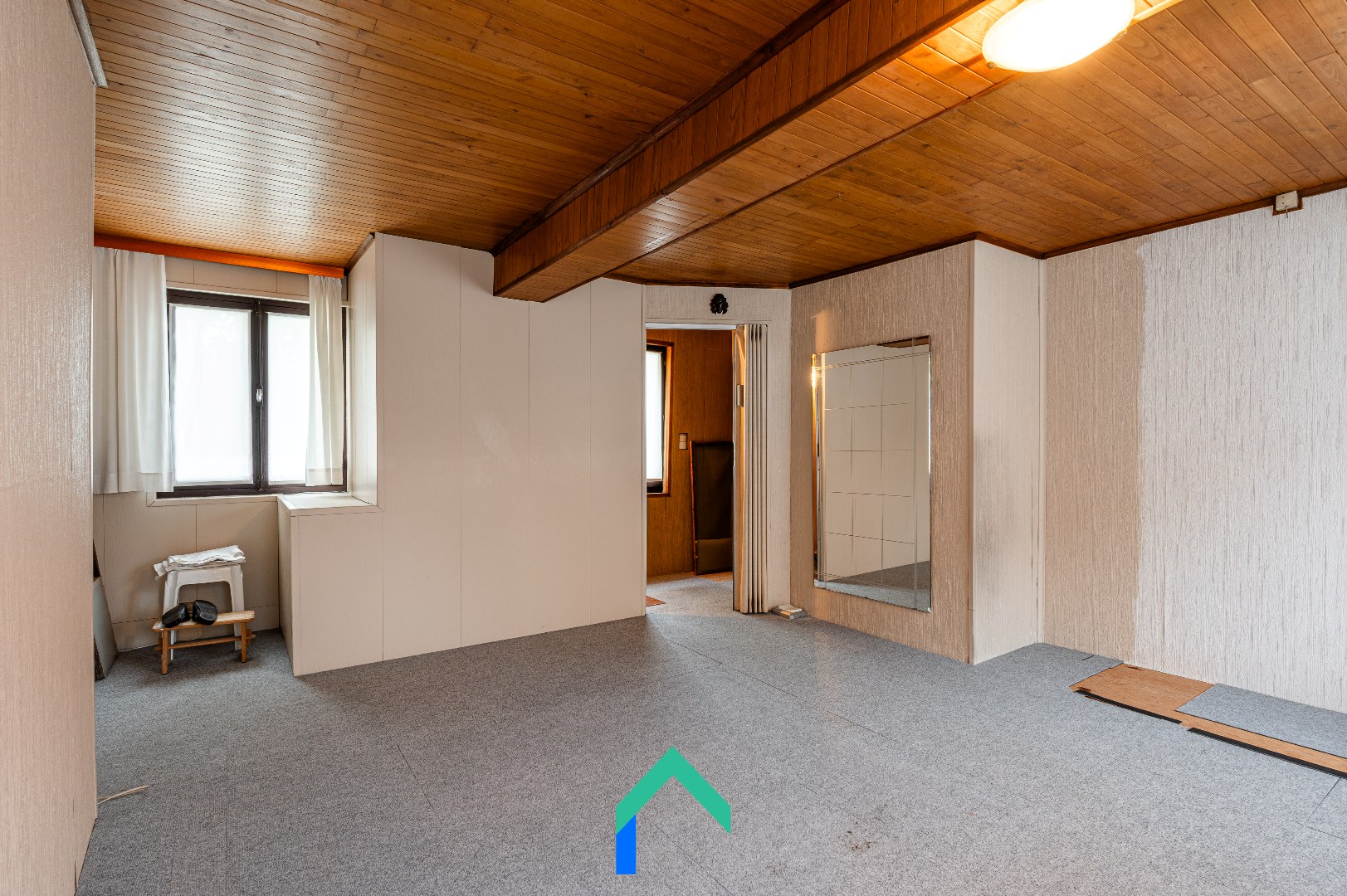 Op de eerste verdieping vind je een ruime slaapkamer die perfect dienst kan doen als master bedroom. De tweede verdieping biedt nog een extra slaapkamer, onder het dak, met tal van mogelijkheden. Met de juiste afwerking kan deze ruimte worden omgetoverd tot een bijzonder sfeervolle kamer.