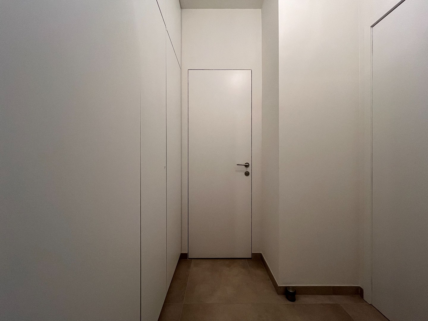 Het appartement is tot in detail afgewerkt en wordt volledig gemeubeld aangeboden. Maatwerkkasten, schuifdeuren, hoogwaardige materialen, gordijnen en vliegramen zorgen voor een instapklare woonbeleving. Het volledige appartement, dat voldoet aan de BEN-norm, is uitgerust met vloerverwarming én koeling, aangestuurd door een collectieve geothermische warmtepomp in combinatie met zonnepanelen — een duurzame installatie die resulteert in een bijzonder laag energieverbruik. Tot slot beschikt u over een ondergrondse autostaanplaats en een fietsenstalling met fietslift, wat het comfort en gebruiksgemak compleet maakt.