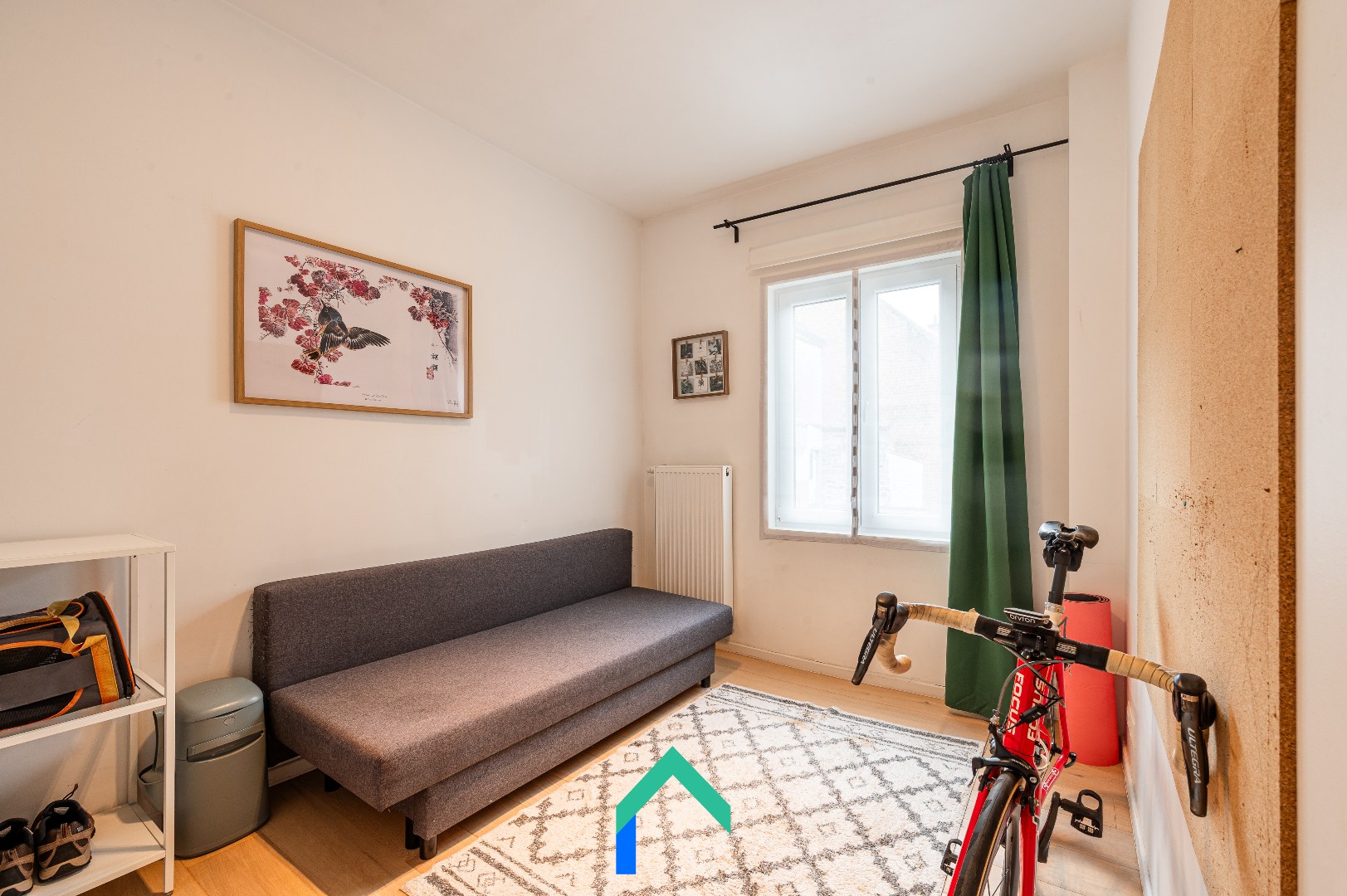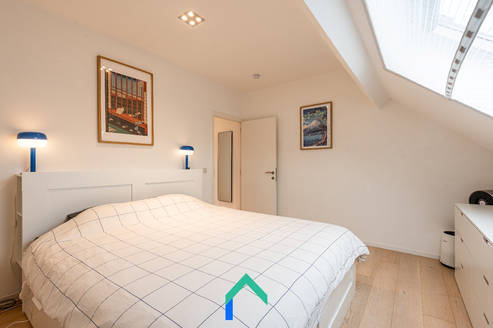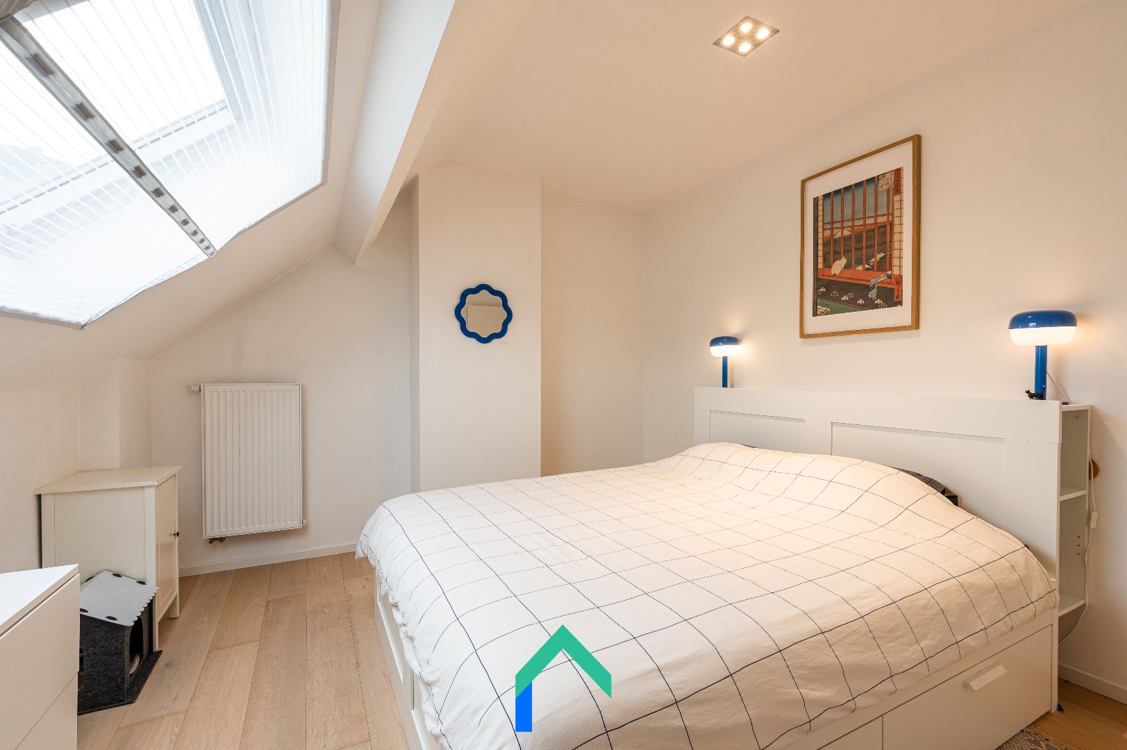 Op de eerste tussenverdieping vinden we de volledig uitgeruste badkamer met ligbad, aparte douche en dubbele lavabo. De eerste en tweede verdieping tellen telkens twee slaapkamers. De kamers op de eerste verdieping meten respectievelijk 16 m² en 12,5 m² en zijn ideaal als master bedroom, kinderkamer of bureau. Op de tweede verdieping bevinden zich nog twee gelijkaardige slaapkamers, beide voorzien van dakvensters. Doorheen de hele woning ligt fineerparket, wat zorgt voor een warme en karaktervolle uitstraling.