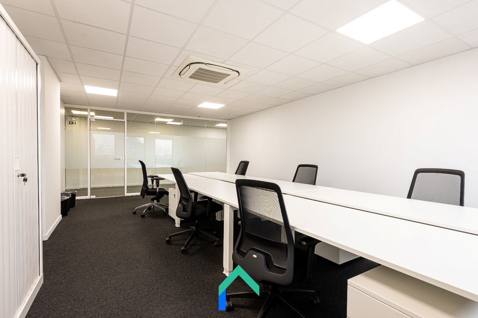 Een volledig ingericht kantoor van 40 m², ideaal voor teams tot zes personen. Deze kantoorplek is uitgerust met bureaus, stoelen en wandkasten. Het maandelijkse huurtarief bedraagt € 1.800 exclusief btw, een all-in formule. De huurcontracten zijn jaarlijks opzegbaar, wat je maximale flexibiliteit geeft bij het plannen van je groei. Dankzij de gunstige ligging, professionele ondersteuning en rijke faciliteiten is dit een slimme keuze voor ondernemers die willen focussen op wat echt telt: hun business.