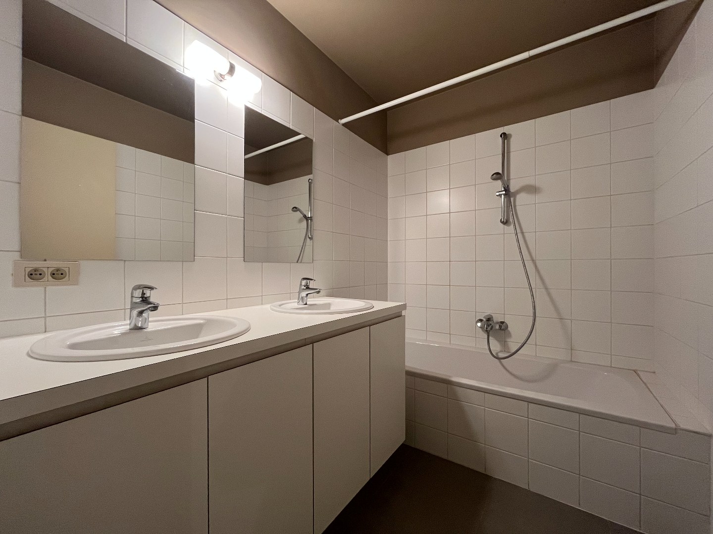 Bij binnenkomst wordt u verwelkomd in een ruime en verzorgde inkomhal met een apart gastentoilet. De inkomhal biedt meteen toegang tot de ruime leefruimte. Deze biedt voldoende plaats voor zowel een gezellige zithoek als een eethoek. De open keuken is volledig ingericht met een oven, een vaatwasser en een koelkast met diepvriesvak. Dankzij het schuifraam stapt u eenvoudig uit op het ruime en rustige terras, ideaal om van zonnige dagen en gezellige avonden te genieten. Het appartement beschikt over twee volwaardige slaapkamers. De badkamer is voorzien van een ligbad met douchemogelijkheid en een dubbele wastafel. Daarnaast is er een praktische berging die kan dienen als wasplaats of opslagruimte. Een extra troef is de privatieve bergruimte in de kelder. Uw wagen staat veilig op een privatieve staanplaats in de ondergrondse garage, wat extra gemak en gemoedsrust biedt.