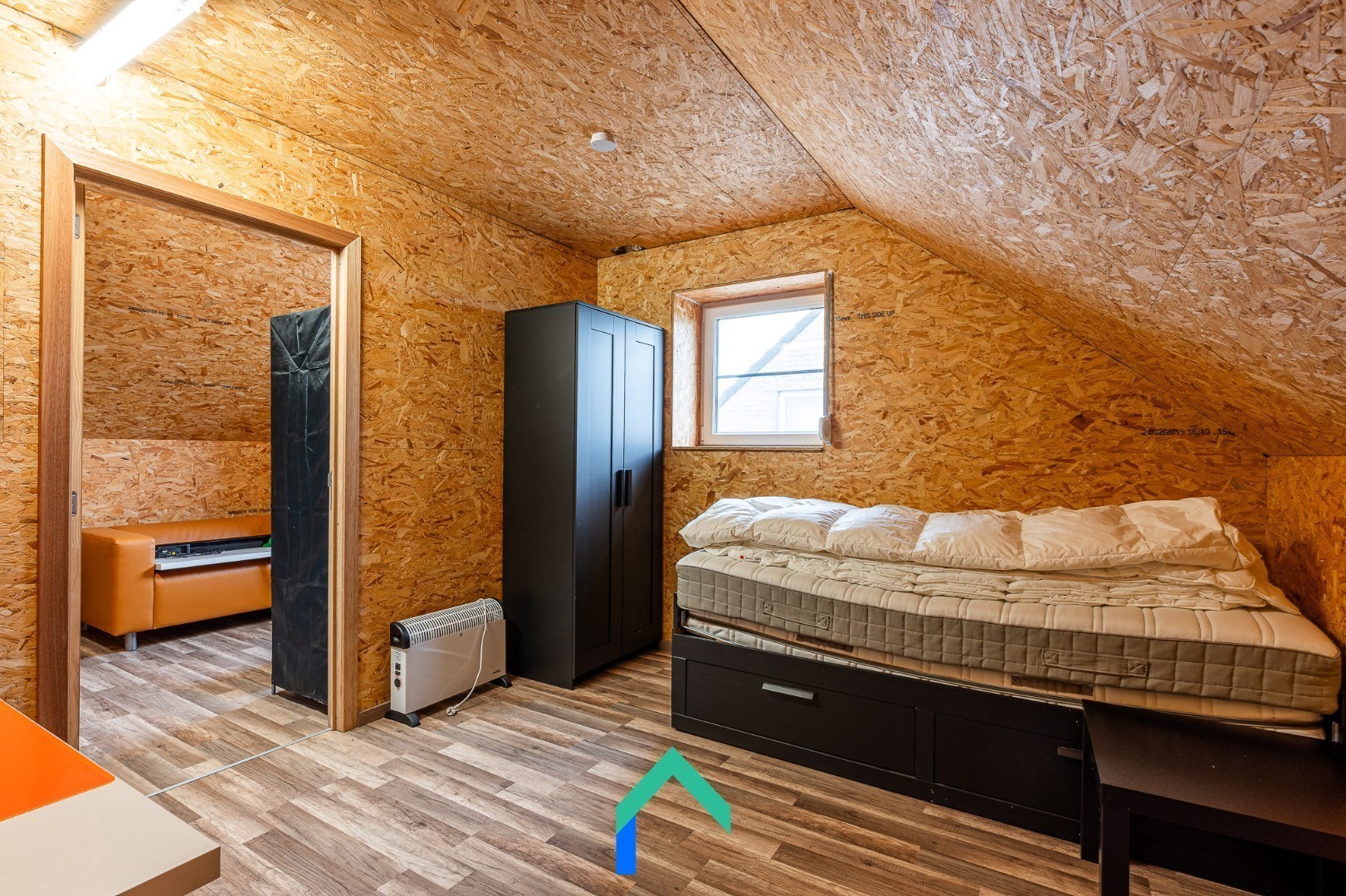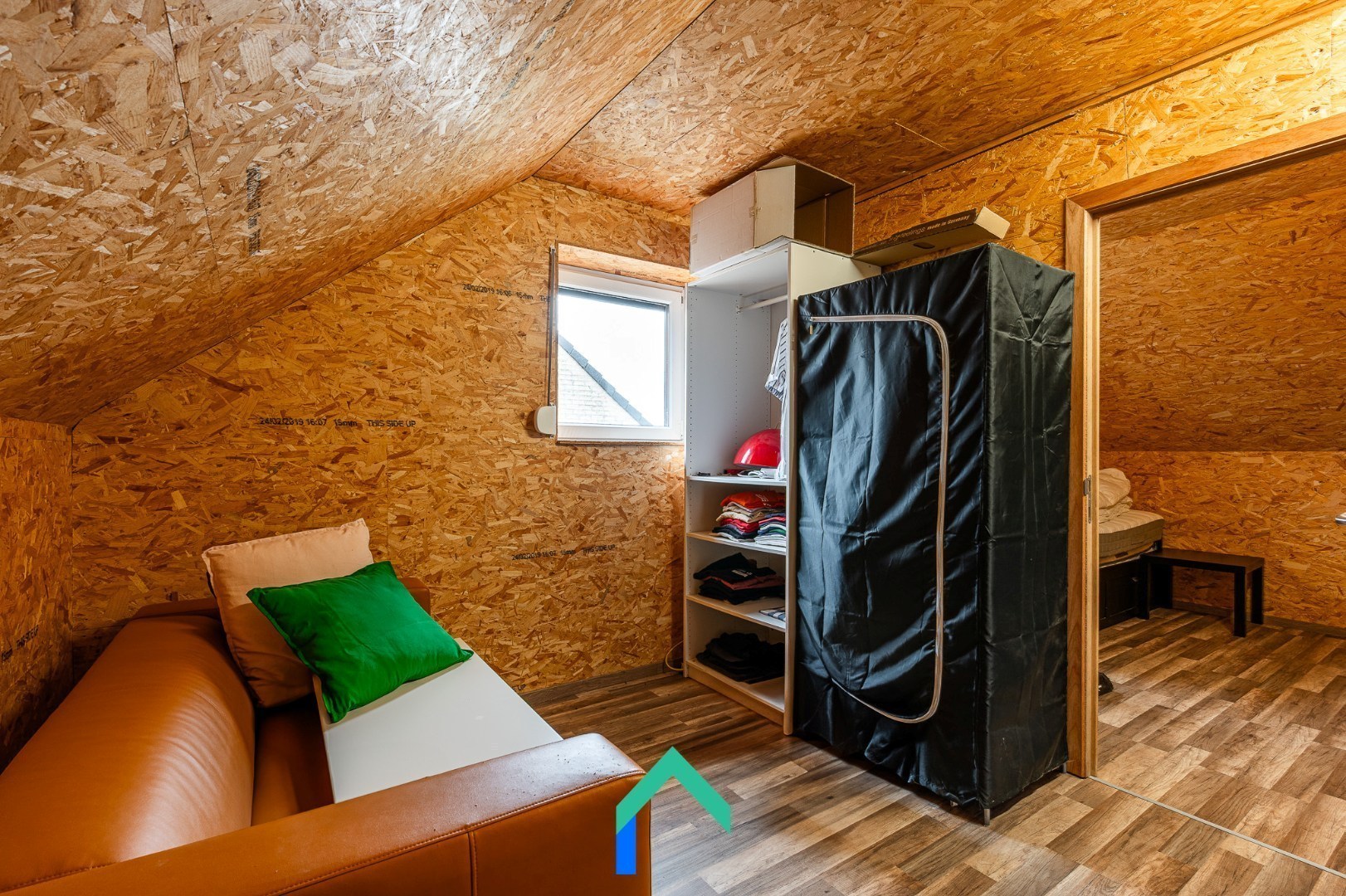 De tweede verdieping kan bereikt worden via een uitschuifbare trap. Deze ruimte werd volledig afgewerkt met OSB-platen en er werd een extra ruimte gecreëerd die kan dienen als extra slaapkamer of hobbyruimte.