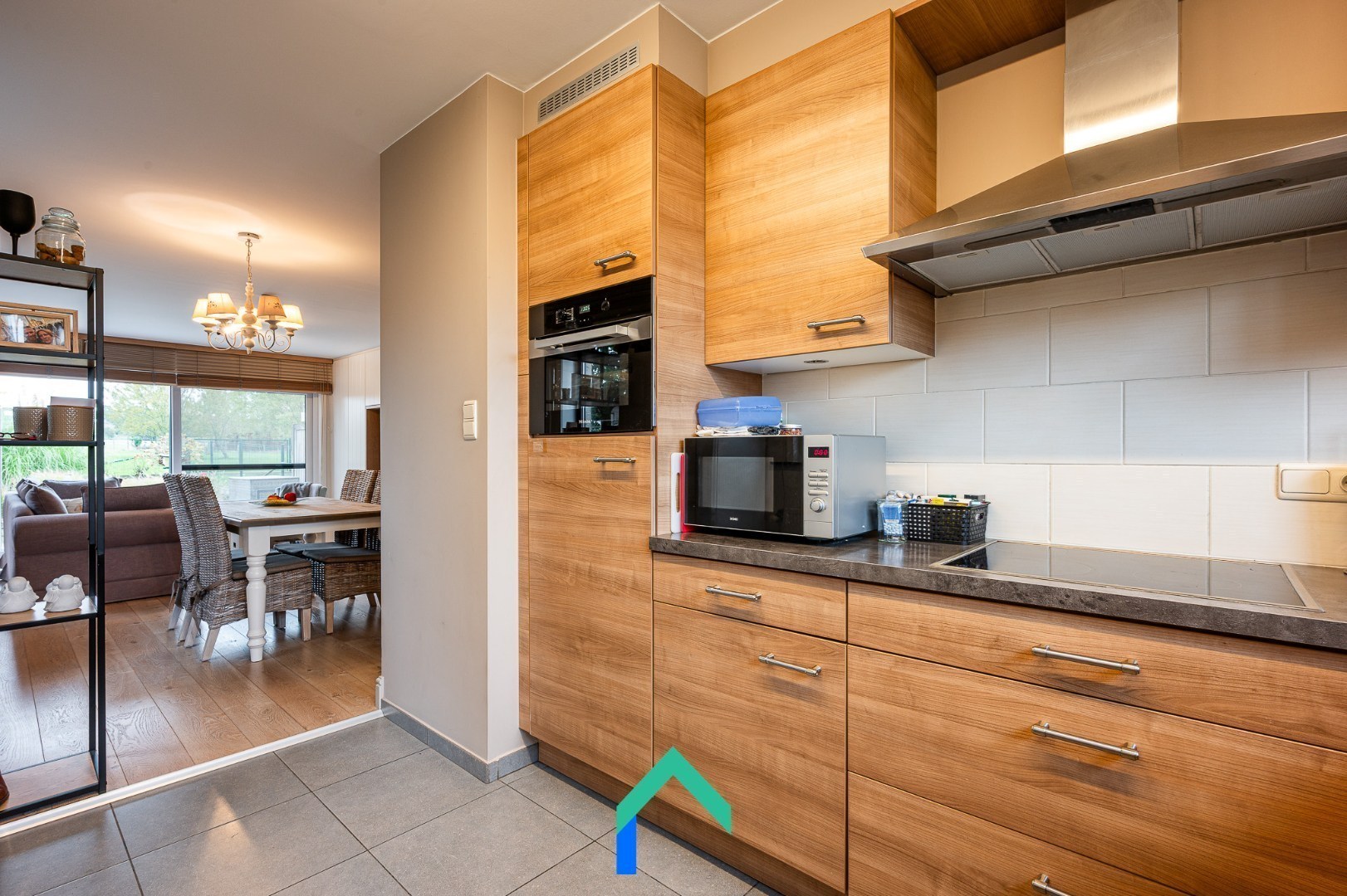 We komen binnen via de inkomhal die voorzien is van een praktische inbouwkast. Via deze inkom is er toegang tot het gastentoilet en kom je ook in de leefruimte. Deze leefruimte is op zijn beurt voorzien van een handige, kwalitatieve kastenwand waar de tv perfect in past. Vanuit de leefruimte heb je een prachtig zicht op de aangelegde tuin door het grote schuifraam. De keuken bevindt zich vooraan in de woning en staat in direct contact met de leefruimte. Deze is voorzien van alle hedendaagse toestellen zoals een vaatwas, ingebouwde koelkast met vriesvak.