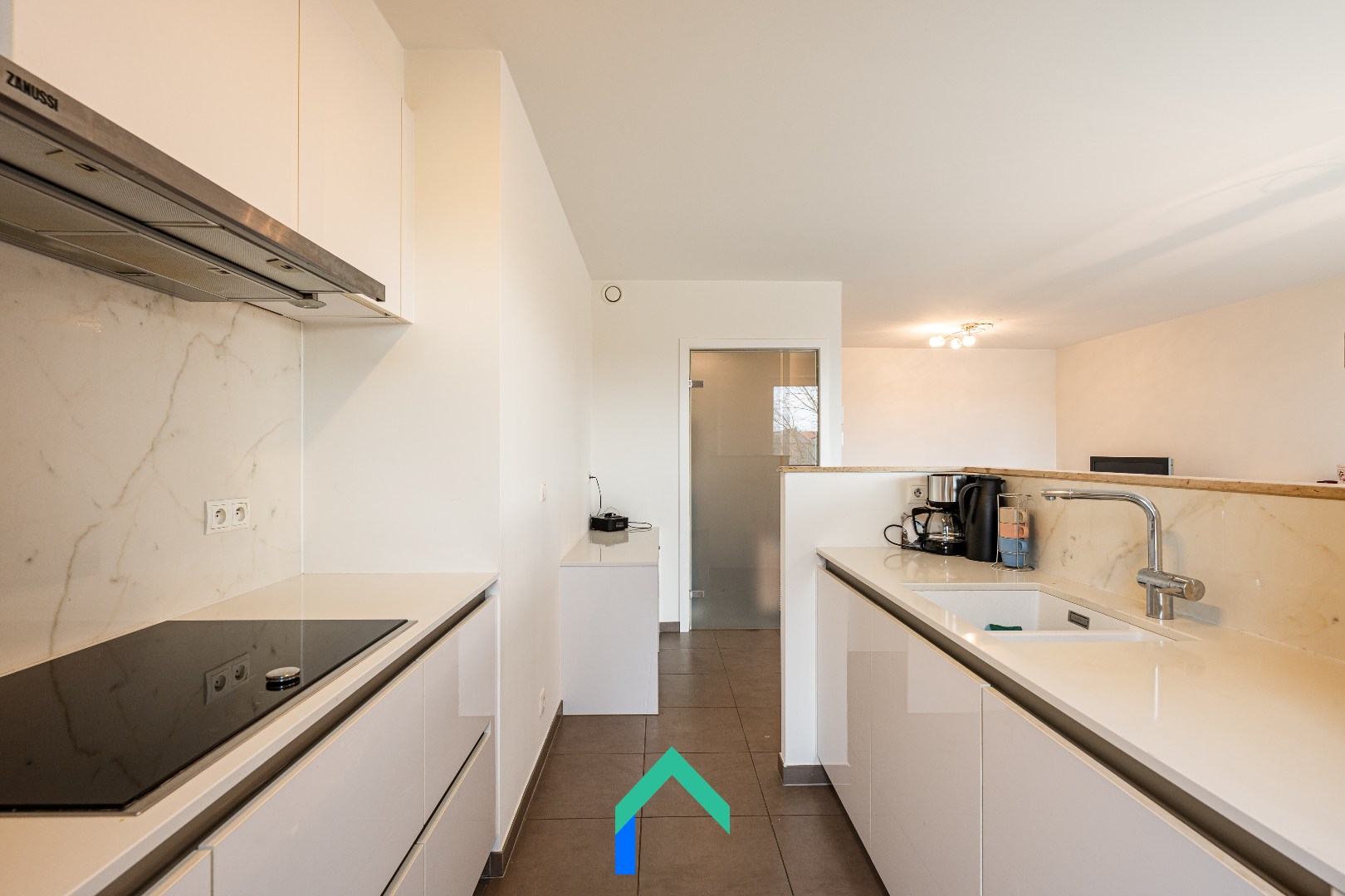 Het appartement is toegankelijk via een afzonderlijke inkomhal met ook directe toegang tot de grote, lichtrijke leefruimte met open keuken. Deze ruimte biedt voldoende plaats voor een gezellige zithoek, een eetplaats en een volledig uitgeruste en kwalitatieve keuken met onder andere een combi-oven, vaatwasser en inductiekookplaat. Bovendien is er aan de leefruimte nog een ruim en zonnig terras met zuid-west oriëntatie en toegankelijk via een groot schuifraam met vliegenraam. Vanuit de hal bereiken we de volwaardige slaapkamer met voldoende plaats voor een dubbel bed en 2 kleerkasten. De moderne badkamer is voorzien van een douche, lavabo en handdoekradiator. Tot slot beschikt het appartement over een apart toilet en een handige berging met voorziening voor het plaatsen van een wasmachine en/of droogkast.