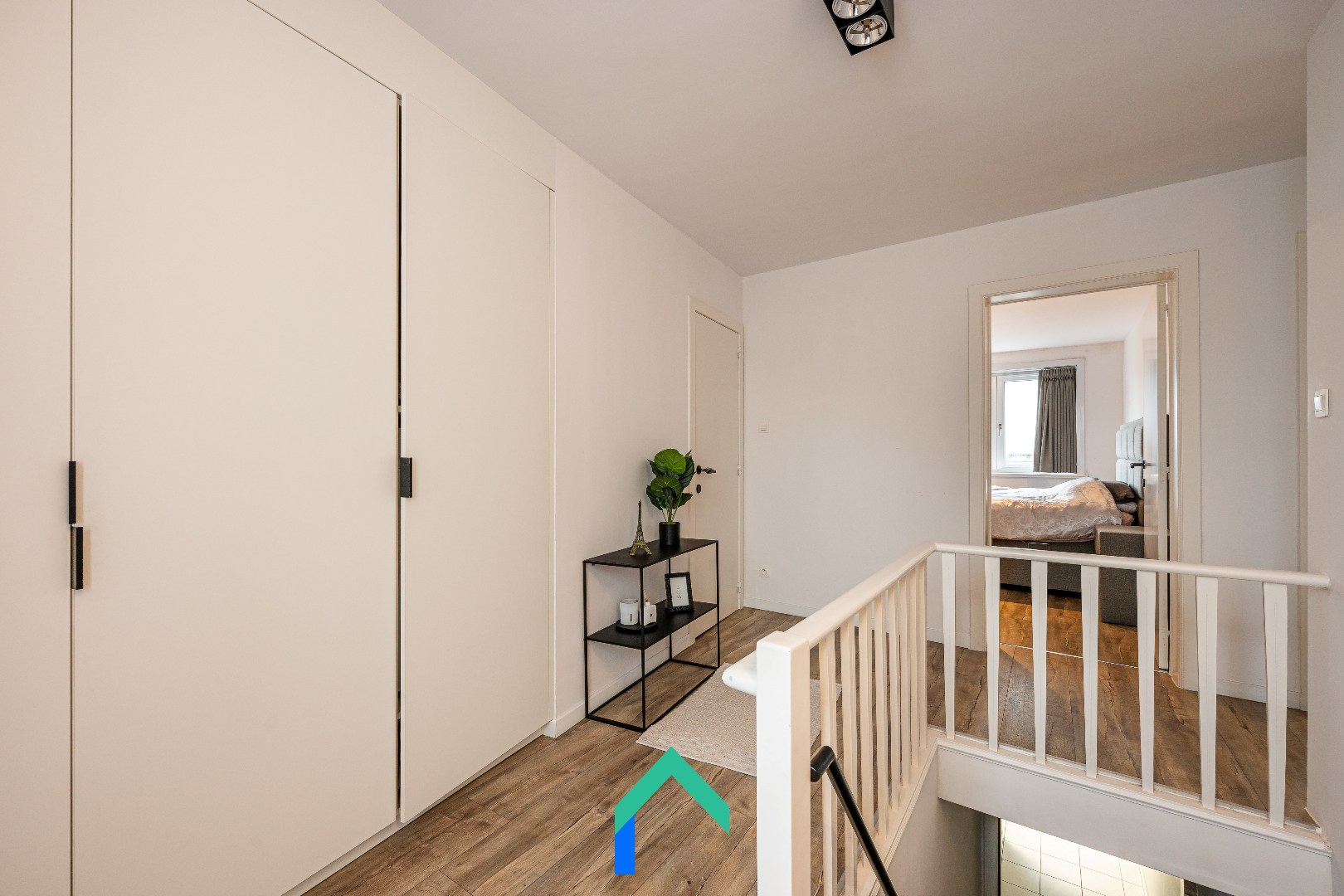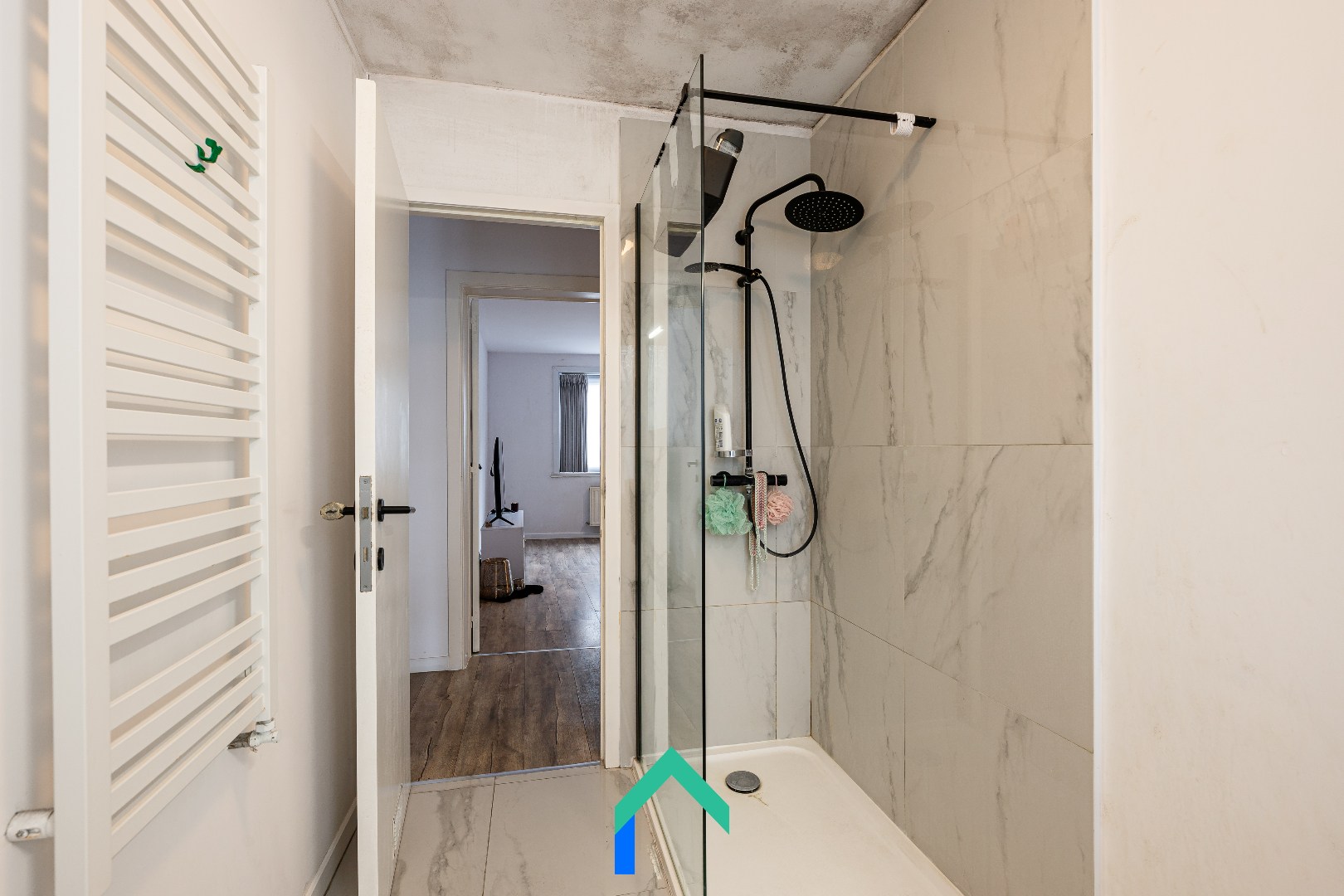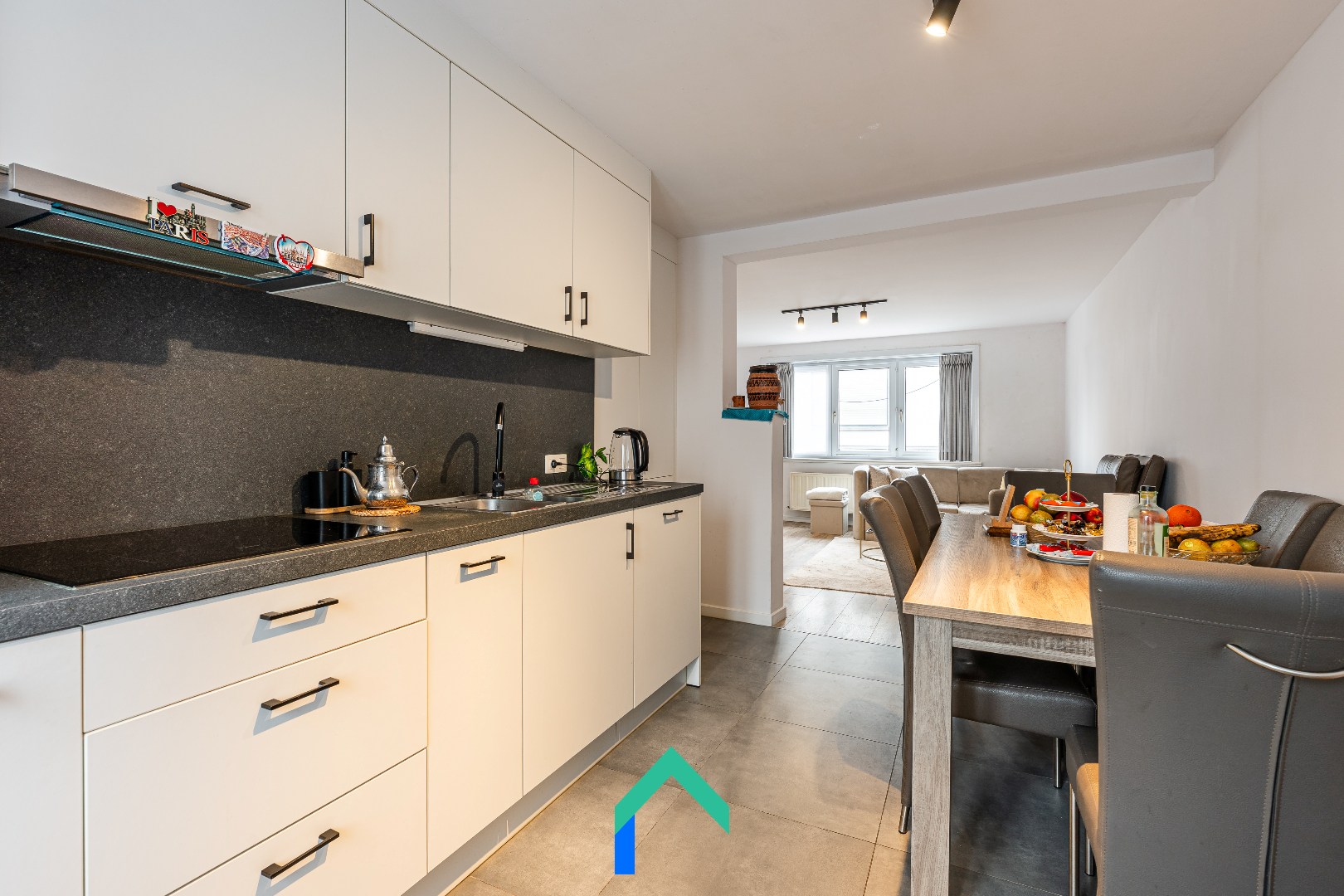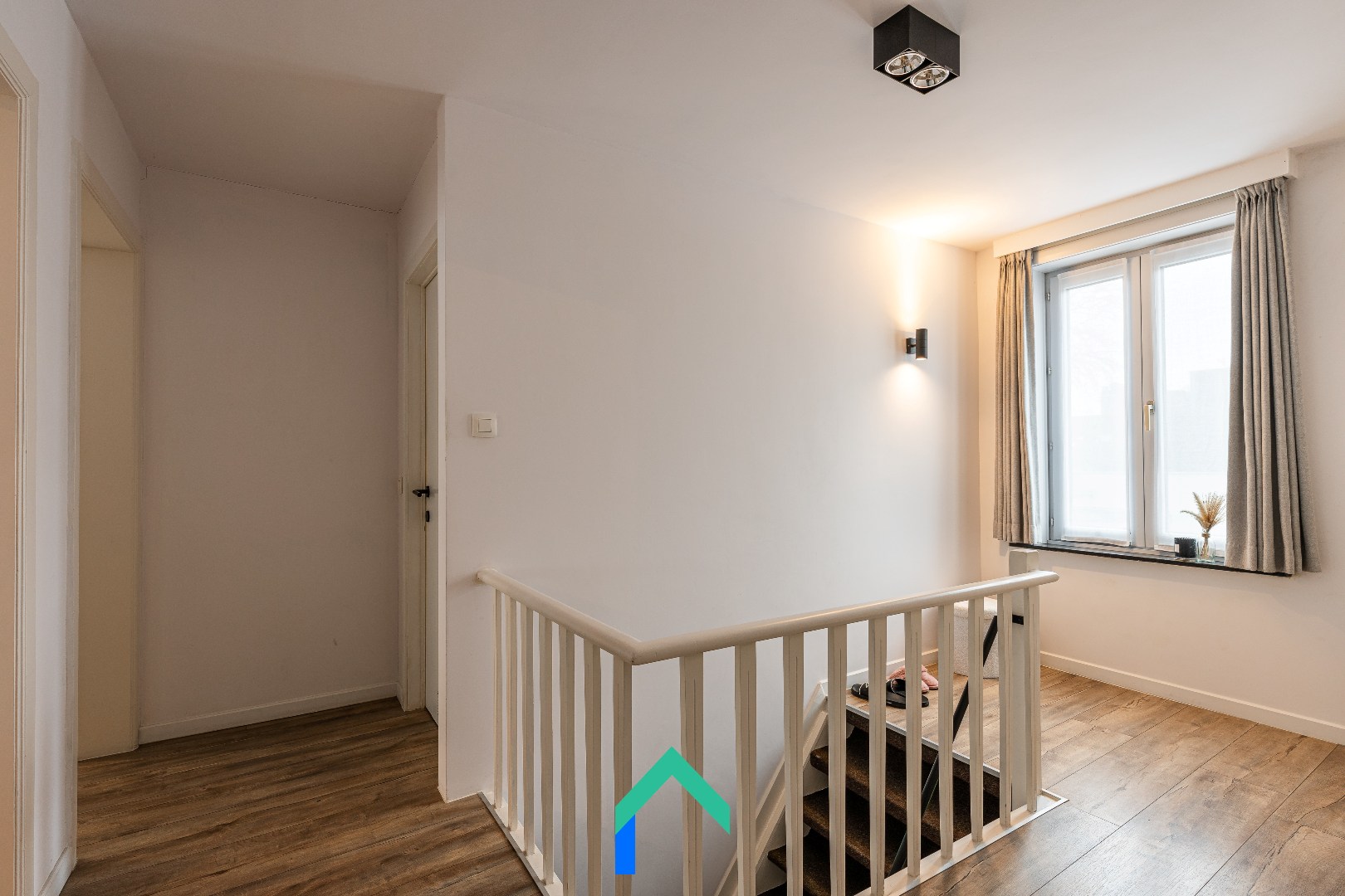 Op de eerste verdieping bevindt zich het gerenoveerde appartement met een bewoonbare oppervlakte van maar liefst 142 m². Bij het betreden van het appartement komt u in de inkomhal met een praktische ingebouwde kastenwand waarin onder meer de technieken en aansluiting voor een wasmachine zijn voorzien. De leefruimte straalt warmte en gezelligheid uit dankzij de mooie laminaatvloer en geniet van een aangename lichtinval. De keuken sluit hier naadloos op aan en is volledig uitgerust met moderne toestellen waaronder een oven, koelkast, vaatwasser en inductiekookplaat. Het appartement beschikt over een ruime slaapkamer en een hedendaagse badkamer met inloopdouche en toilet. Via een vaste trap bereikt u de ruime zolder die tal van mogelijkheden biedt, bijvoorbeeld als extra opslagruimte of hobbyruimte.