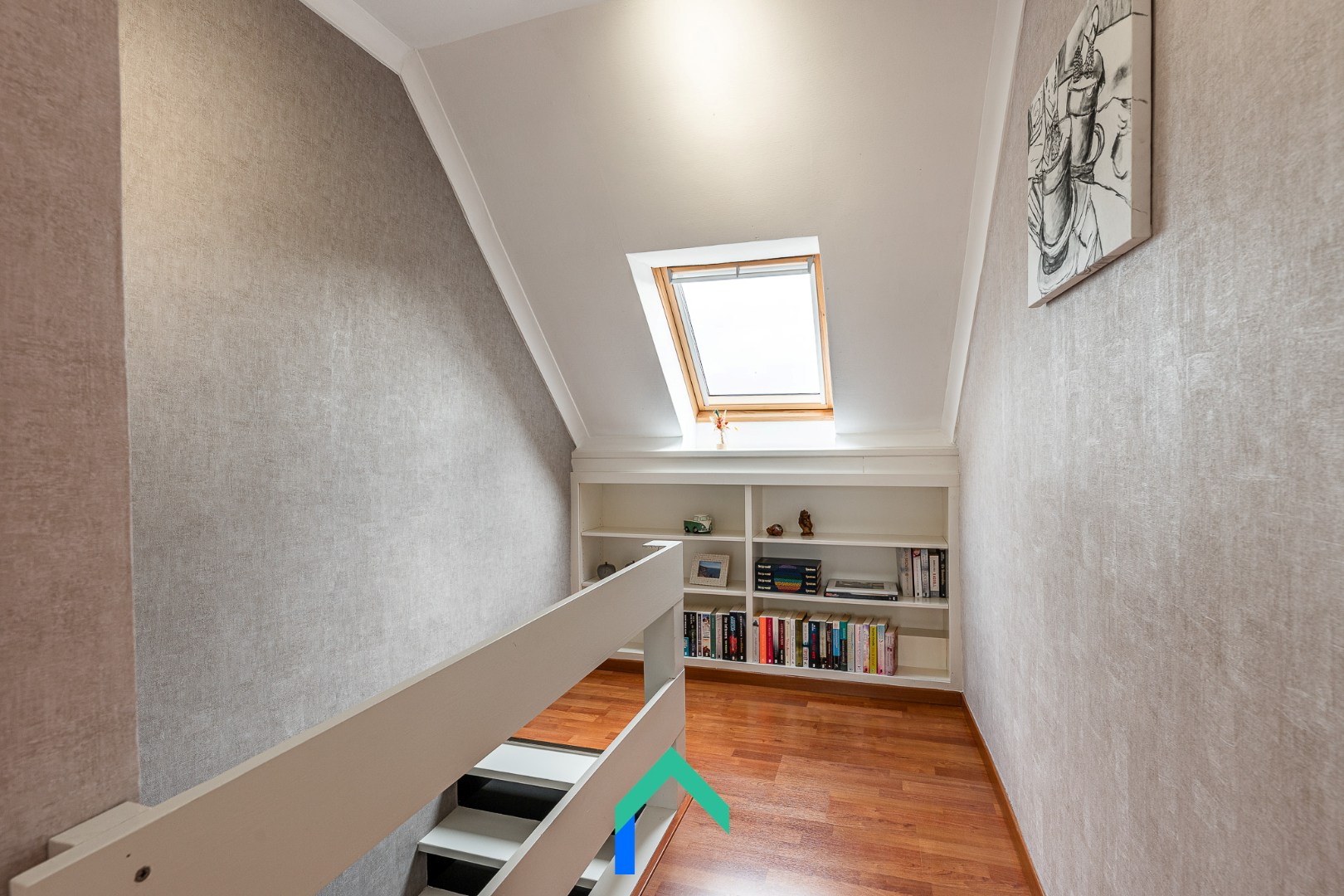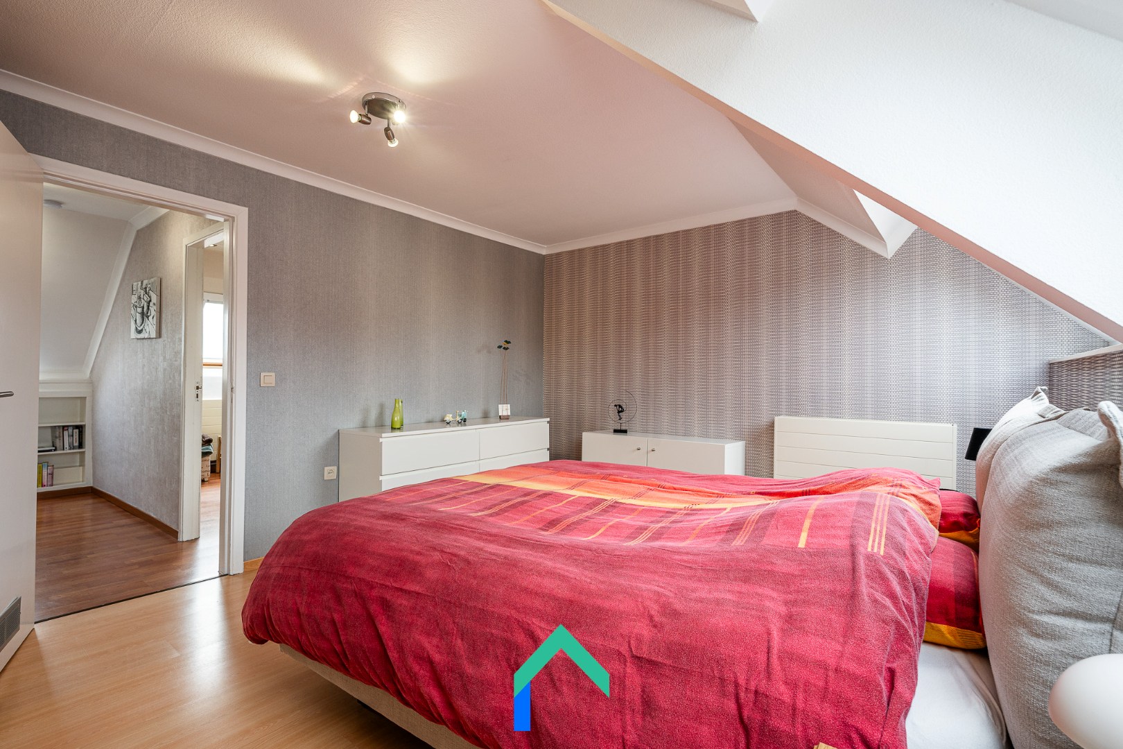 Op de eerste verdieping vinden we 3 ruime slaapkamers en 1 doorgangsruimte die kan dienen als extra slaapkamer, dressing of bureau. Alle slaapkamers zijn afgewerkt met een laminaatvloer en beschikken over verwarming. Verder is er nog een zolder met zoldertrap die dienst kan doen als extra bergruimte.