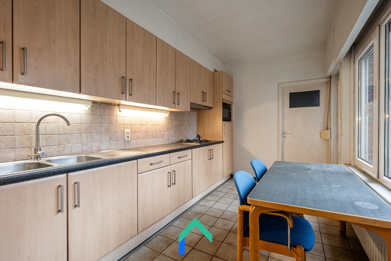 Dit handelspand is bijzonder goed zichtbaar dankzij de grote vitrine en de rechtstreekse toegang vanaf de straat. Binnen beschikt u over een ruimte van circa 25 m², ideaal voor vrije beroepen, kleine kantoren of een gezellige winkel. De ruime hal vormt de verbinding tussen de professionele ruimte en het appartement. Hier bevinden zich ook een apart toilet en een gerenoveerde badkamer met douche, lavabo en handdoekradiator. Achteraan bevindt zich een ruime en lichtrijke woonkamer. Deze sluit enerzijds aan op de keuken, die uitkijkt op de binnenkoer en de privé parkeerplaats, en anderzijds op de twee slaapkamers.