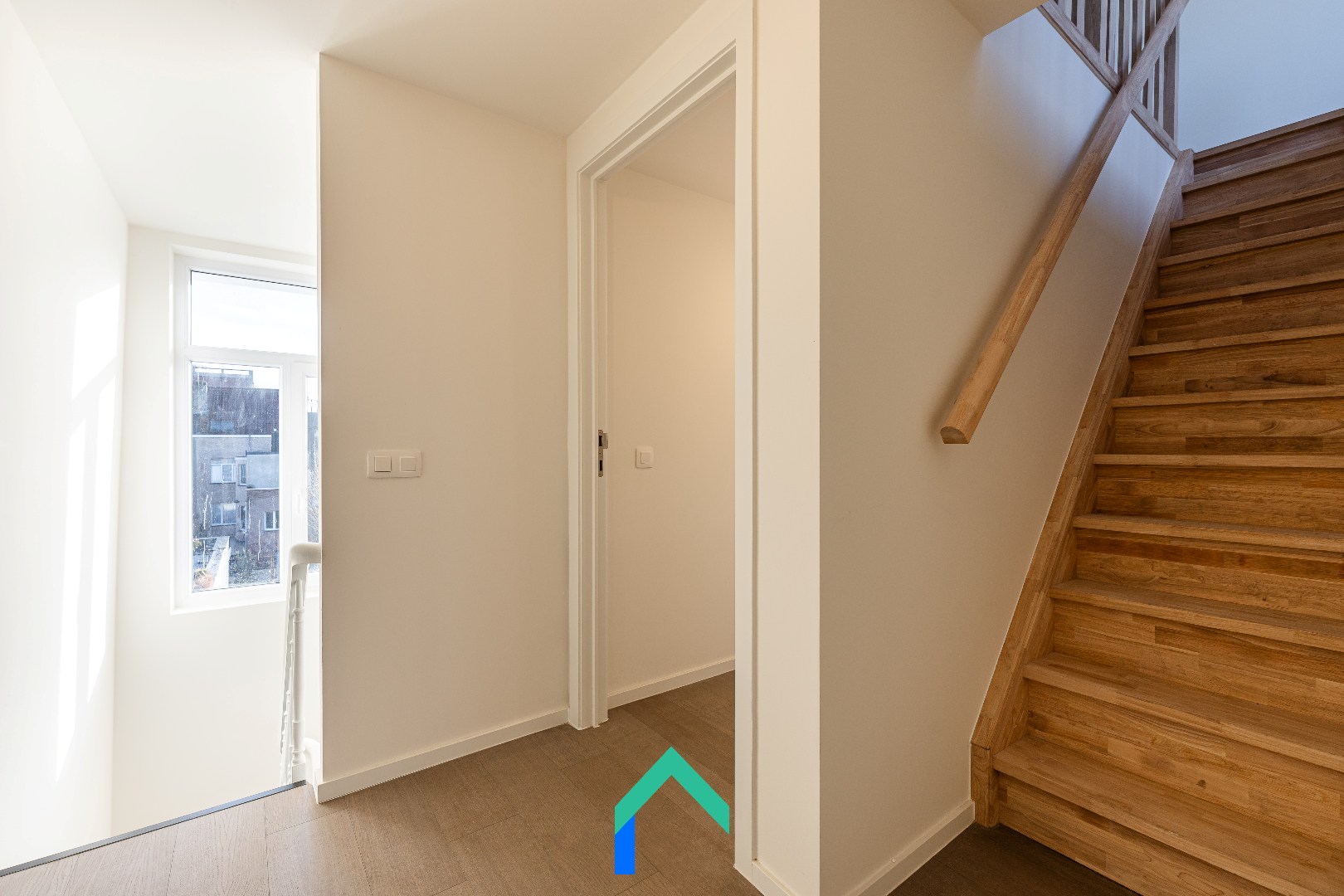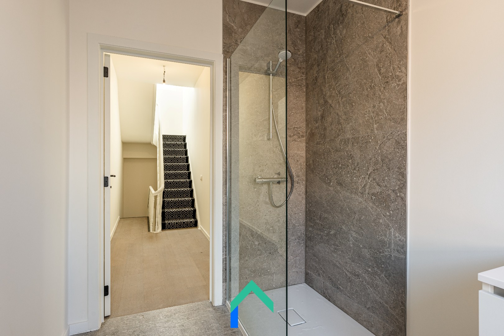 Op de eerste verdieping bevinden zich twee volwaardige slaapkamers en een badkamer uitgerust met een inloopdouche en enkele wastafel. Daarnaast is er ook een afzonderlijk toilet aanwezig. De tweede verdieping telt opnieuw twee slaapkamers en een tweede badkamer met inloopdouche, enkele wastafel en toilet, wat deze woning uitermate geschikt maakt voor grotere gezinnen, cohousing of toeristische verhuur. Op de derde verdieping bevindt zich nog een volledig gerenoveerde zolderkamer die perfect kan dienen als extra slaapkamer, hobbyruimte of bureau.
