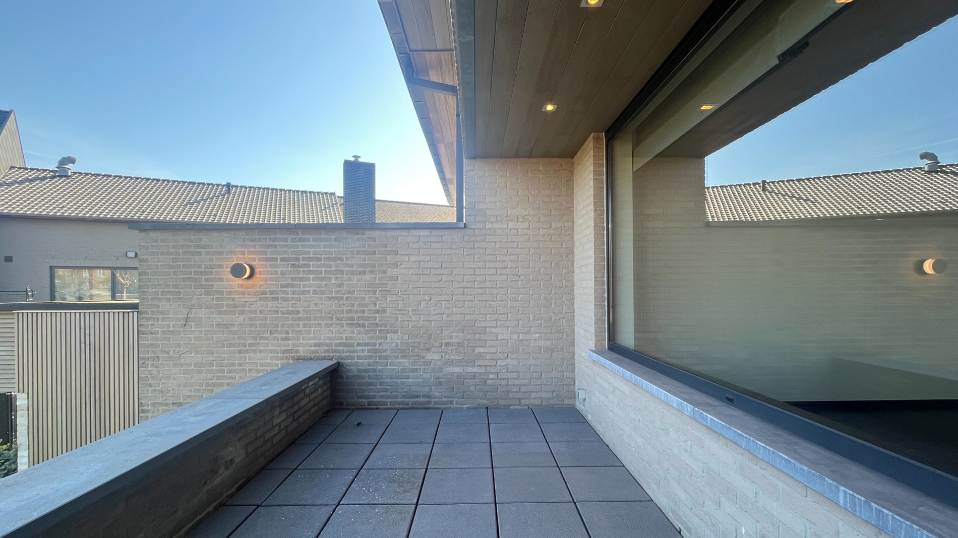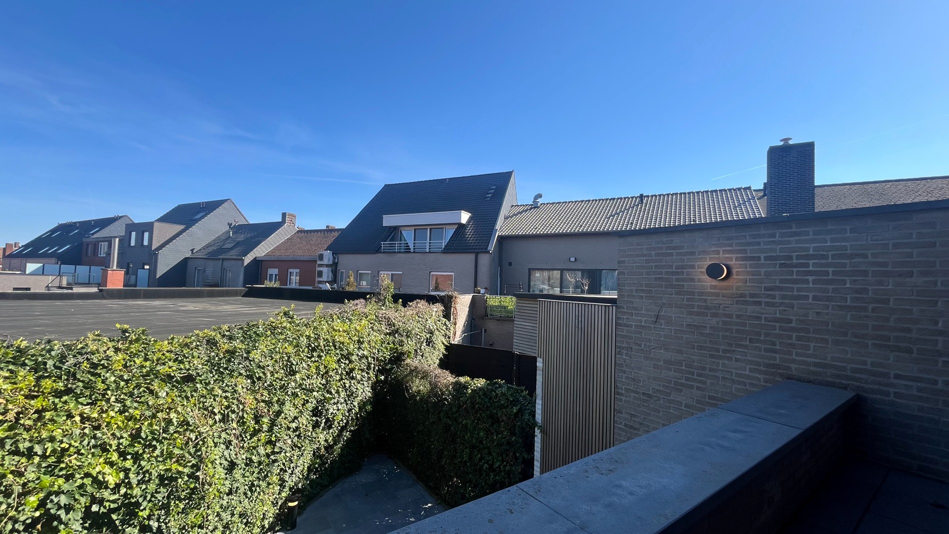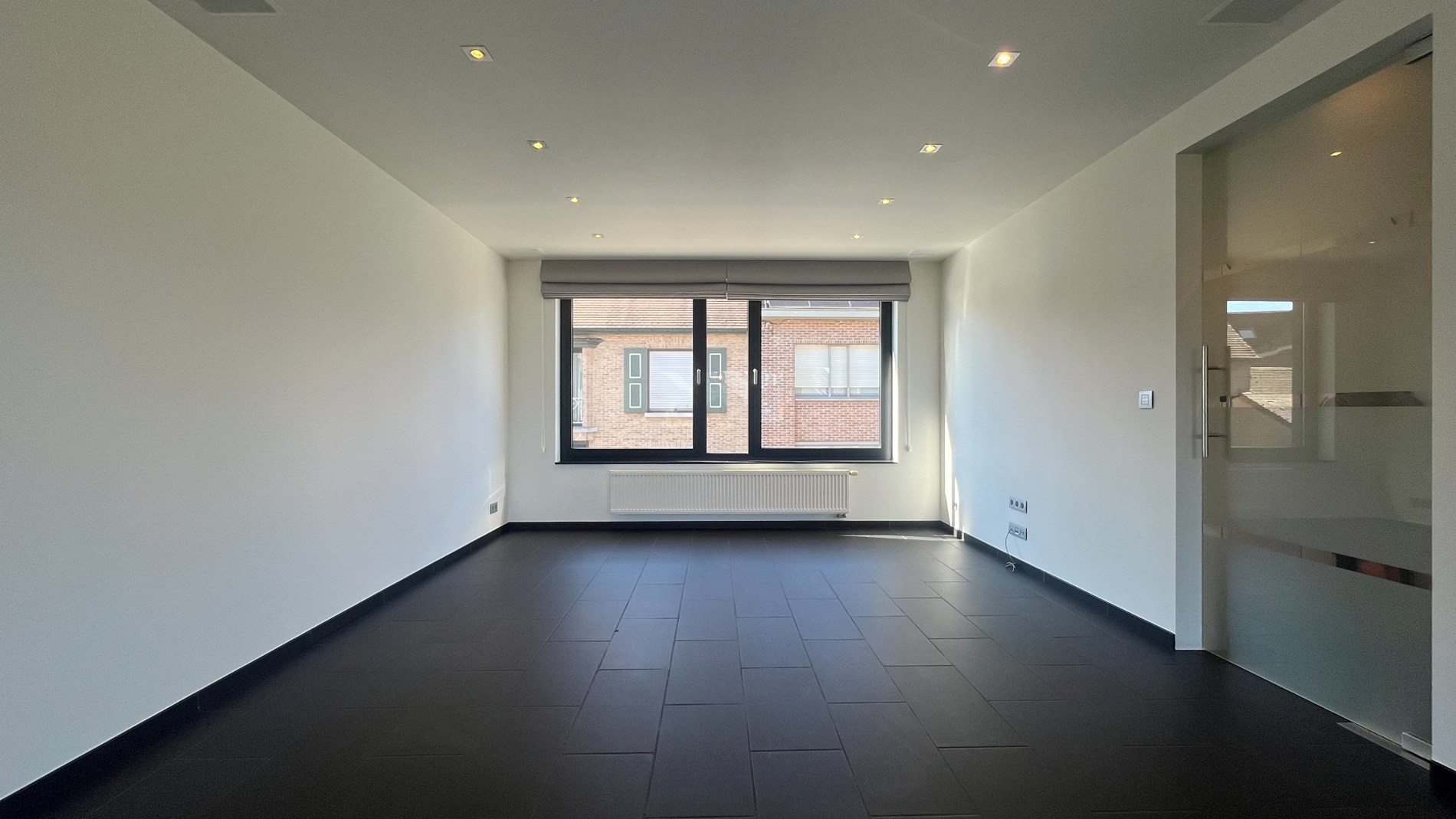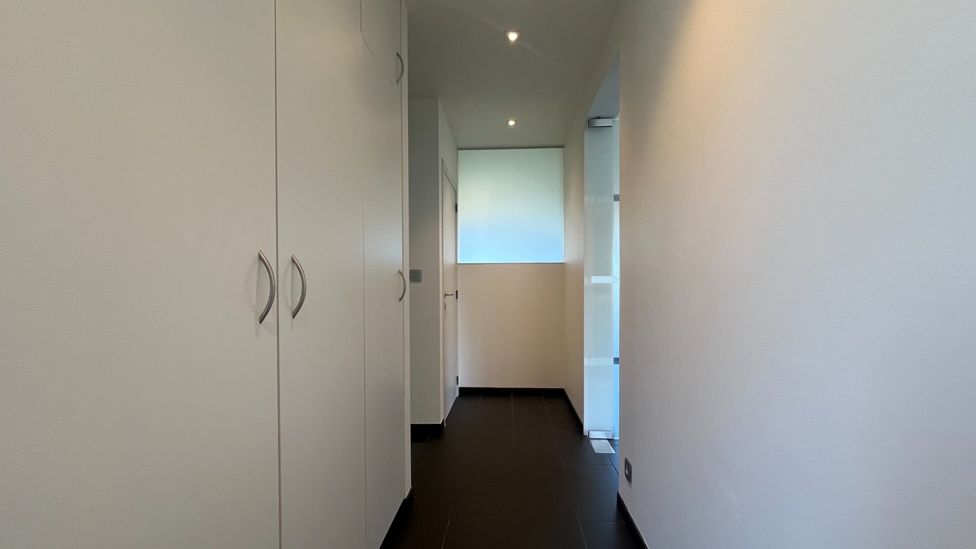 Bij het betreden van de woning word je verwelkomd in een ruime inkomhal die meteen een verzorgde en moderne indruk nalaat. Via de elegante zwarte trap in natuursteen bereik je de bovenverdieping. Hier kom je in een praktische hal met ingemaakte kasten en een gastentoilet. De lichtrijke leefruimte vormt het hart van de woning: grote ramen zorgen voor een overvloed aan natuurlijk licht en zijn bovendien voorzien van gordijnen. Overal is er inbouwverlichting voorzien. De open, volledig ingerichte keuken sluit hier naadloos op aan en maakt het geheel perfect voor gezellige momenten. Aansluitend geniet je van een gezellig terras.