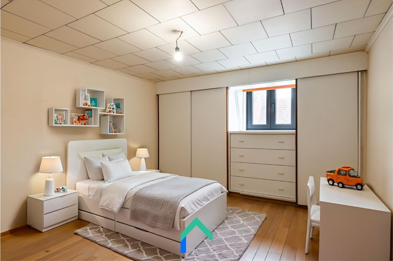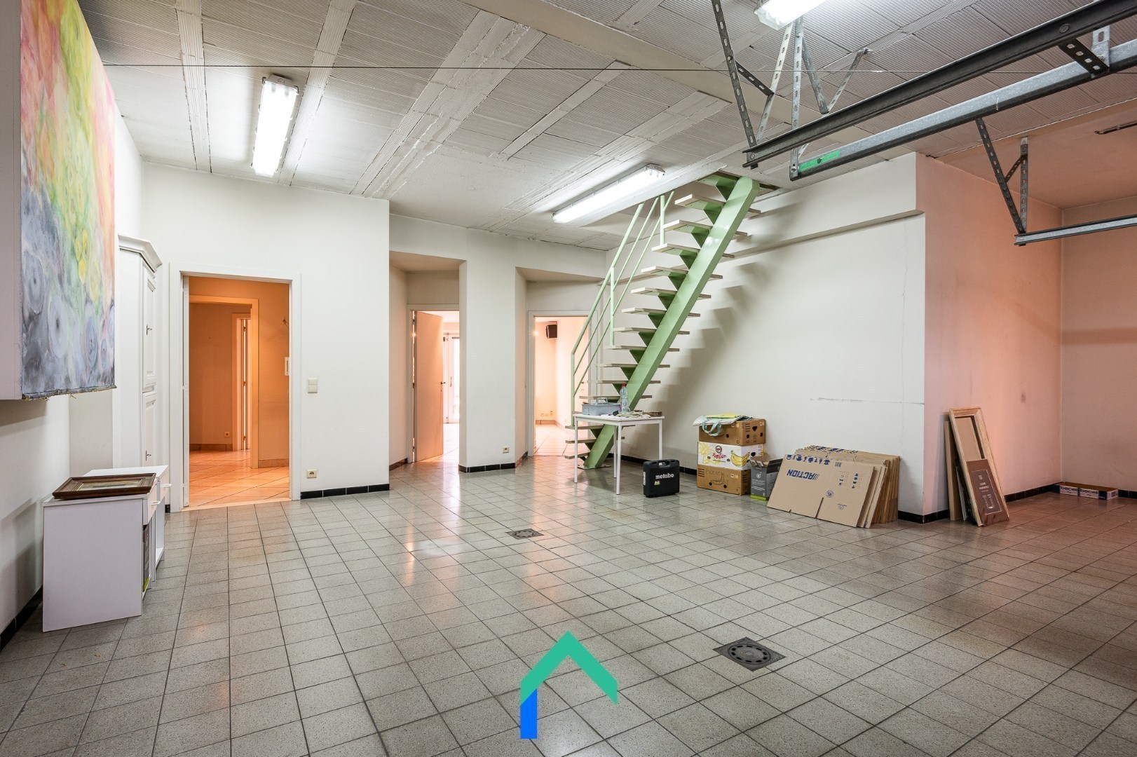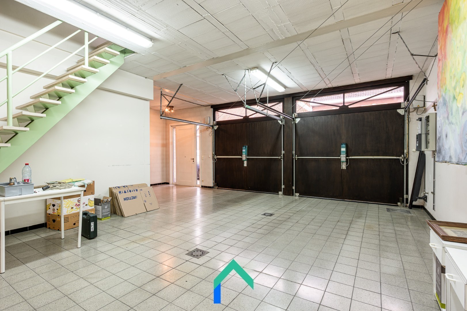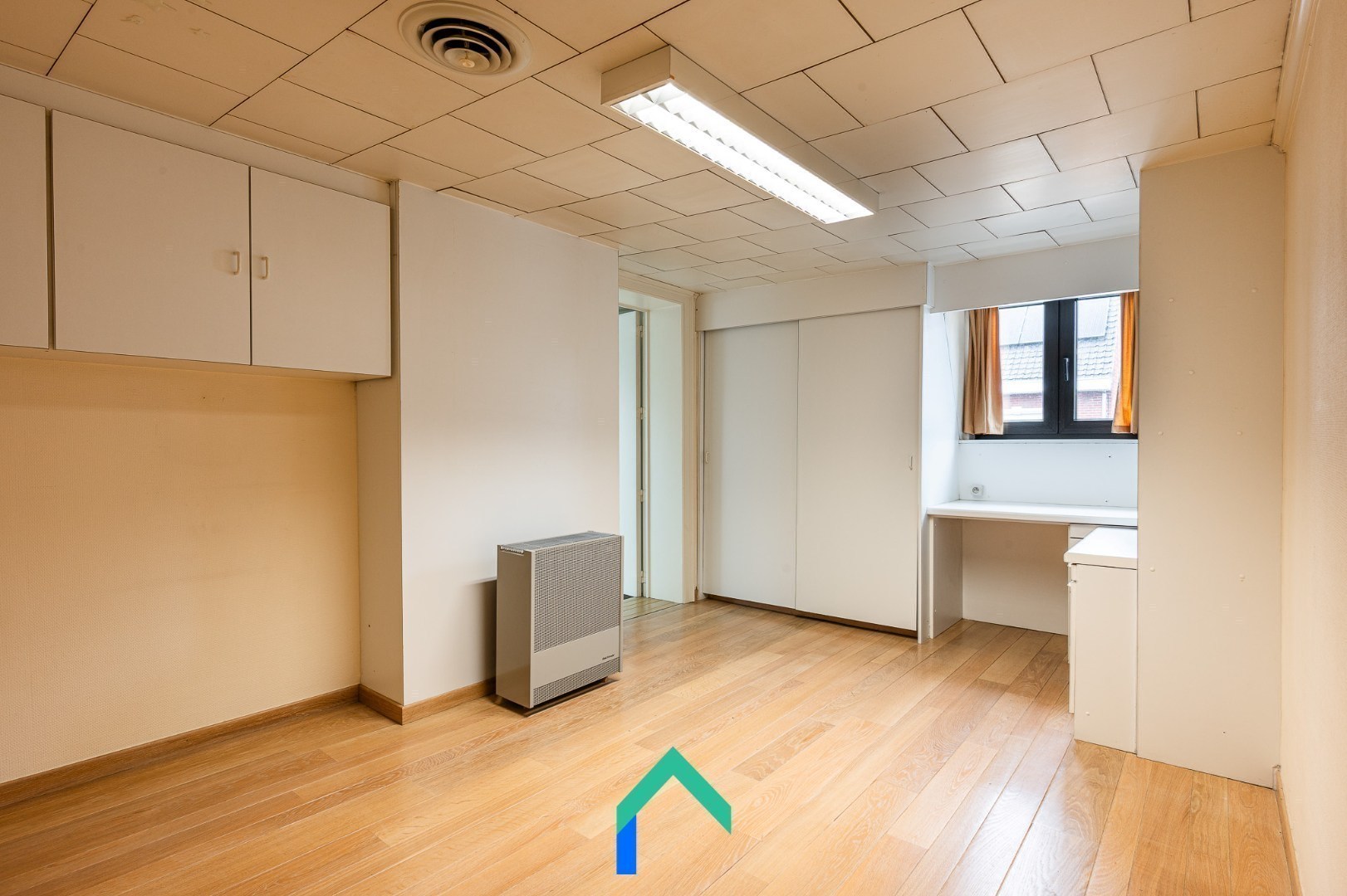 Bij het binnenkomen wordt u verwelkomd in een ruime inkomhal met vestiairekast. Links van de inkom bevindt zich een gelijkvloerse kamer, perfect inzetbaar als bureau of eventuele wachtruimte. Rechts leidt de hal naar de uitnodigende leefruimte, een aangename plek waar de gashaard voor warmte en gezelligheid zorgt. Met de juiste indelings- of renovatiemogelijkheden kan deze voorste leefruimte bijvoorbeeld ook als praktijk of kantoor ingericht worden. Achteraan vinden we de leefkeuken die is uitgerust met de nodige toestellen en voldoende ruimte biedt voor een ontbijthoek of eetplaats. Aansluitend vindt u een gastentoilet en een praktische berging. De badkamer met dubbel lavabomeubel, douche én ligbad op het gelijkvloers maakt deze woning bijzonder functioneel. De woning is voorzien van een dubbele garage met twee automatische poorten, die niet alleen plaats biedt voor wagens, maar ook rechtstreeks toegang geeft tot een achterliggende ruimte van ongeveer 25m2. Deze ruimte leent zich uitstekend tot leefruimte met zicht op de buitenruimte of tot het inrichten van een kantoor, praktijk of atelier. Zowel via de inkomhal als via de garage kan u de eerste verdieping bereiken, een praktische oplossing voor wie wonen en werken graag gescheiden houdt zonder aan comfort in te boeten. Op de bovenverdieping bevinden zich vier volwaardige slaapkamers, waarvan drie met parketvloer. Twee slaapkamers hebben toegang tot een zolderruimte, die nog extra opbergruimte of uitbreidingsmogelijkheden bieden.