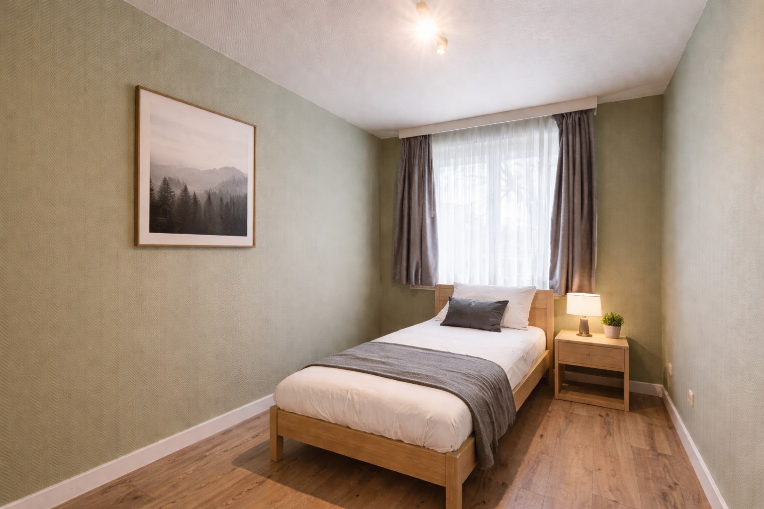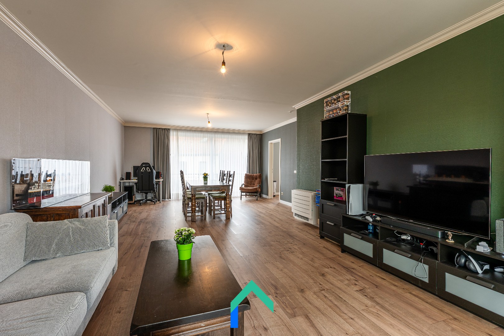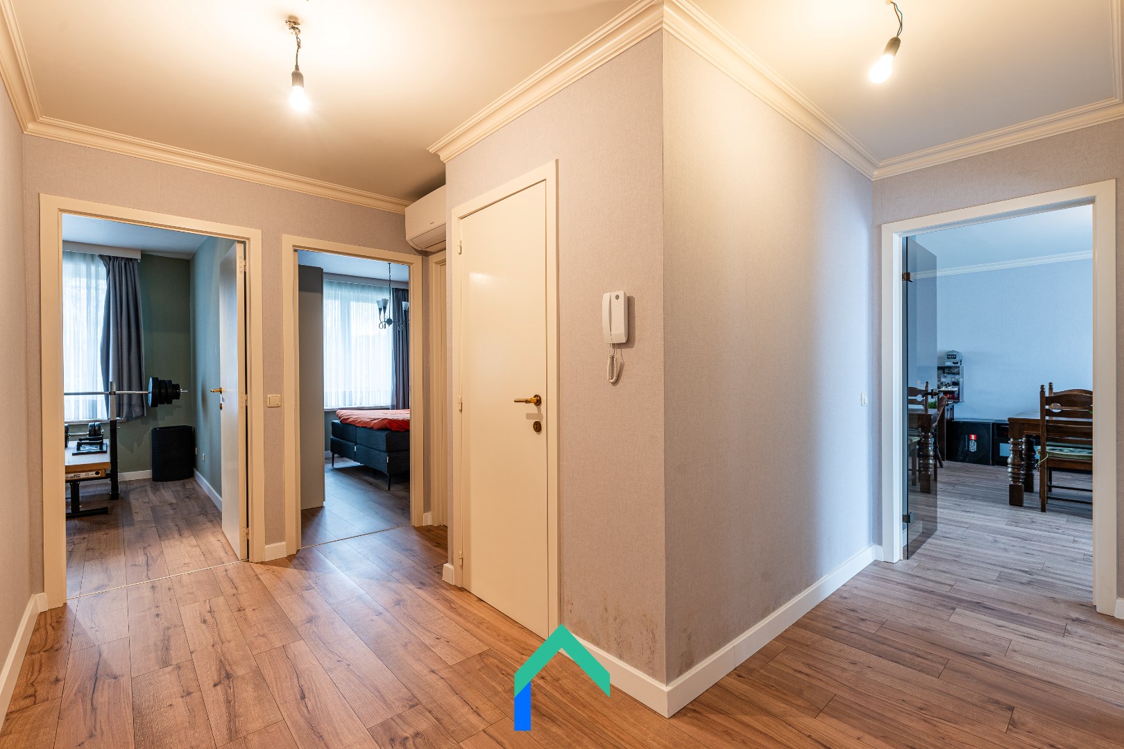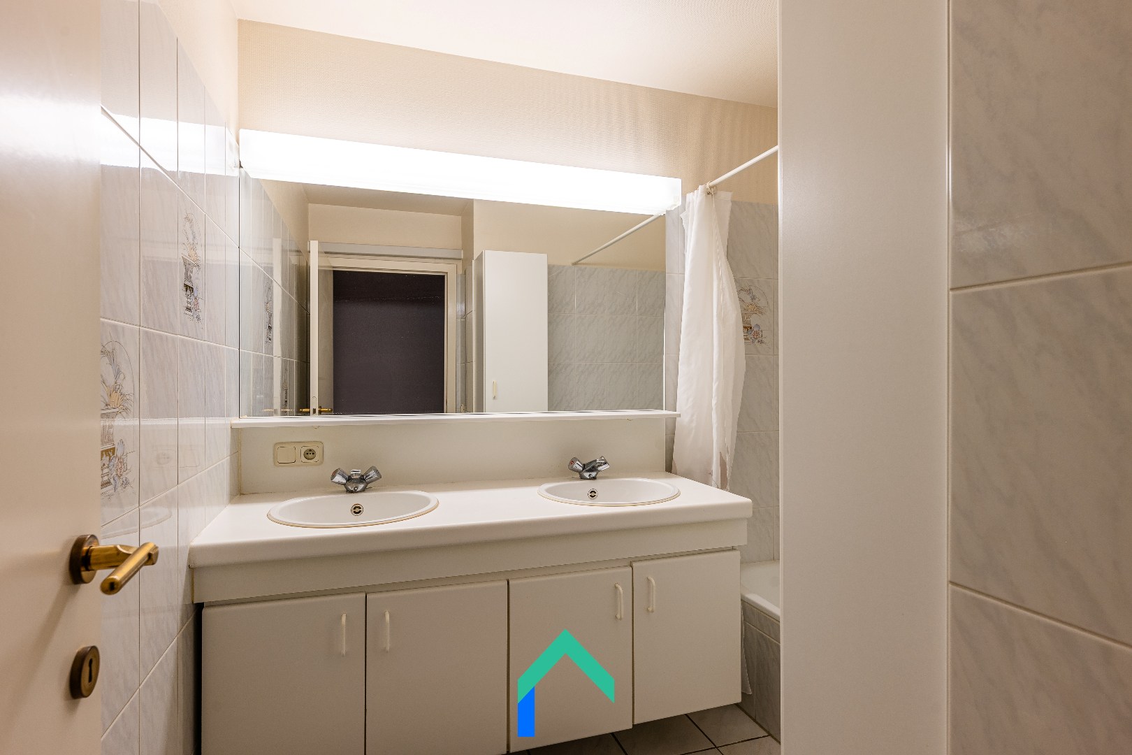 Bij het betreden van het appartement komt u terecht in de inkomhal, die directe toegang biedt tot alle ruimtes. Achteraan bevindt zich de ruime en lichtrijke leefruimte, waar u ruimte genoeg heeft om een gezellige zithoek en een grote eettafel te plaatsen. Aansluitend vindt u de uitgeruste keuken, die dankzij het grote raam geniet van een aangename natuurlijke lichtinval.