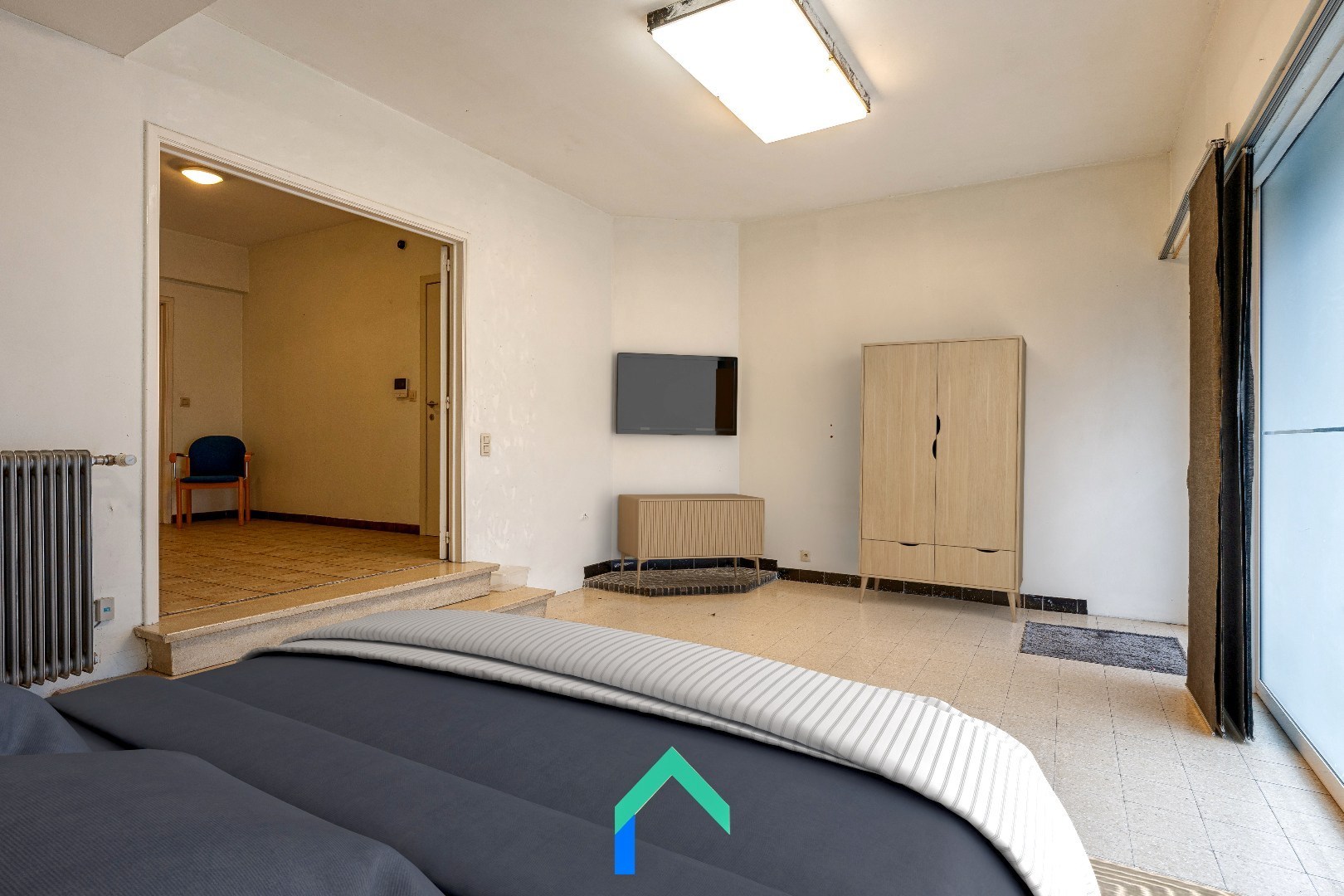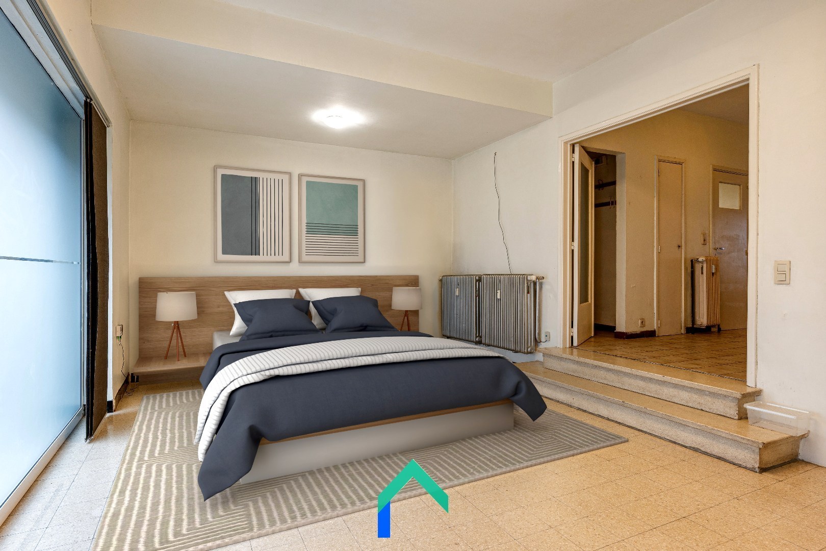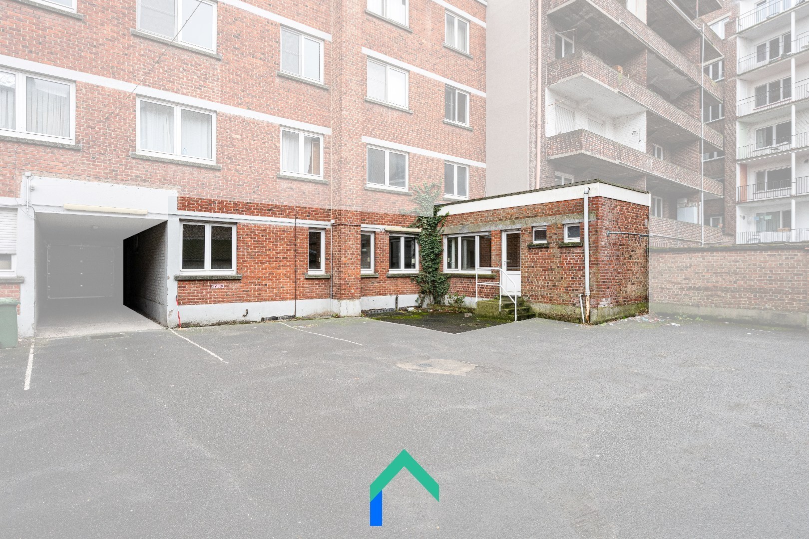 Dit appartement is toegankelijk via een eigen voor- en achterdeur, evenals via de gemeenschappelijke inkomhal van het gebouw. Wanneer we langs de voorzijde binnenkomen, betreden we meteen een ruime en lichtrijke ruimte die kan dienen als woonkamer, maar ook tal van andere invullingen kan hebben zoals bureauruimte, kantoor of zelfs afzonderlijke studio. Via de hal, waar zich ook een toilet en een recent gerenoveerde badkamer bevinden, uitgerust met een douche, lavabo en handdoekradiator, komen we uiteindelijk in de huidige woonkamer. Deze ruime en functionele leefruimte geniet van een goede lichtinval en sluit aan op de keuken, die uitkijkt op de binnenkoer en de privé parkeerplaats. Achter de keuken bevindt zich bovendien een berging met extra potentieel. Aan de andere zijde van de woonkamer vinden we nog een 2 slaapkamers.